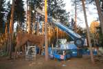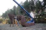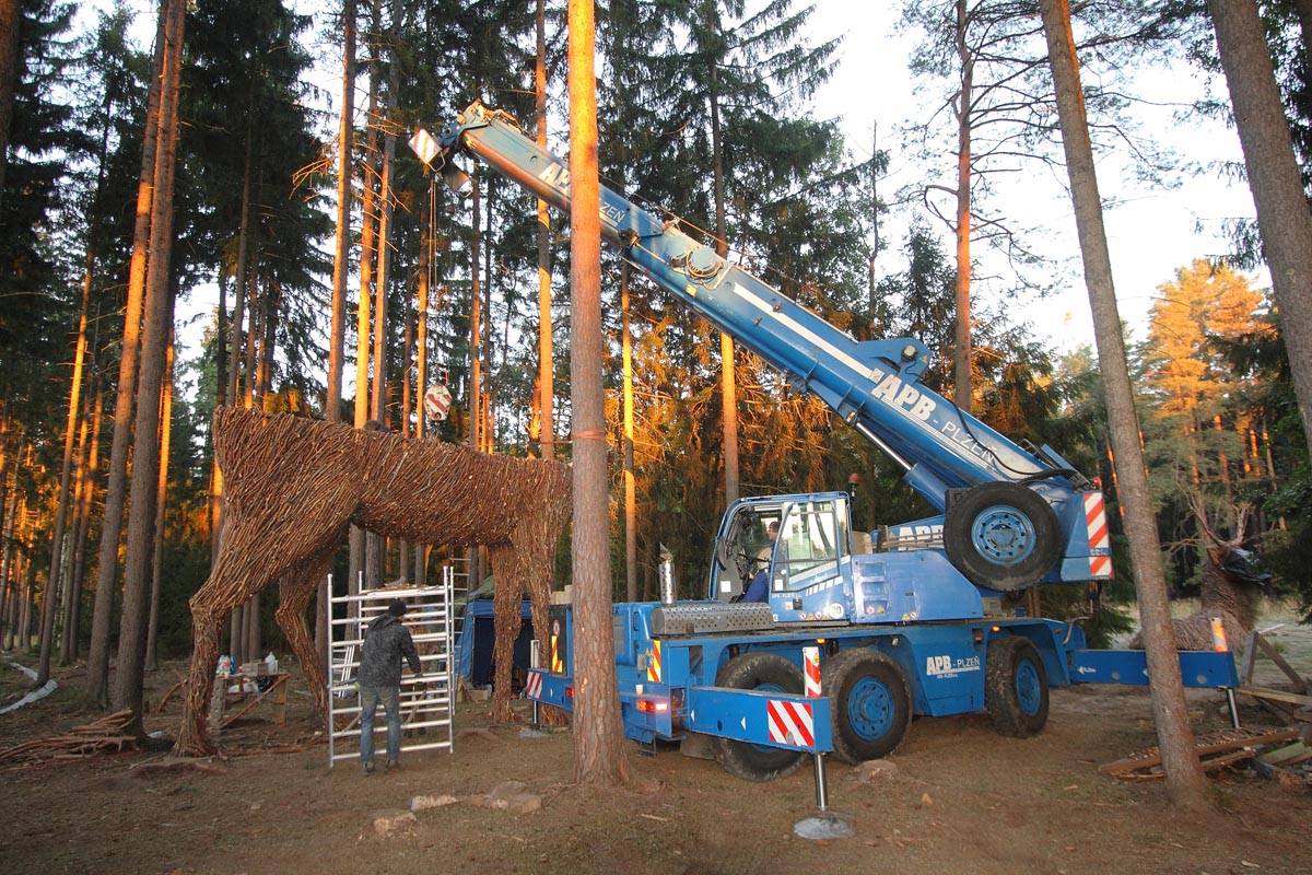 Preparation for film crew. Manipulation with deer by crane AC 40 during filming television advertisement at Dobříš.