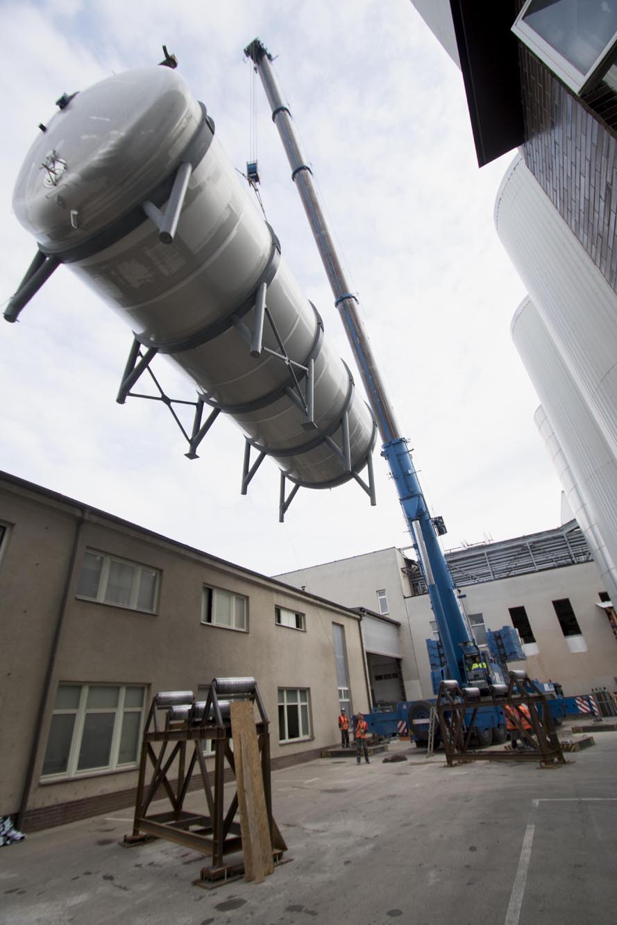 With the AC 350 mobile crane we installed 34 pieces of beer tanks in Budweiser Budvar.