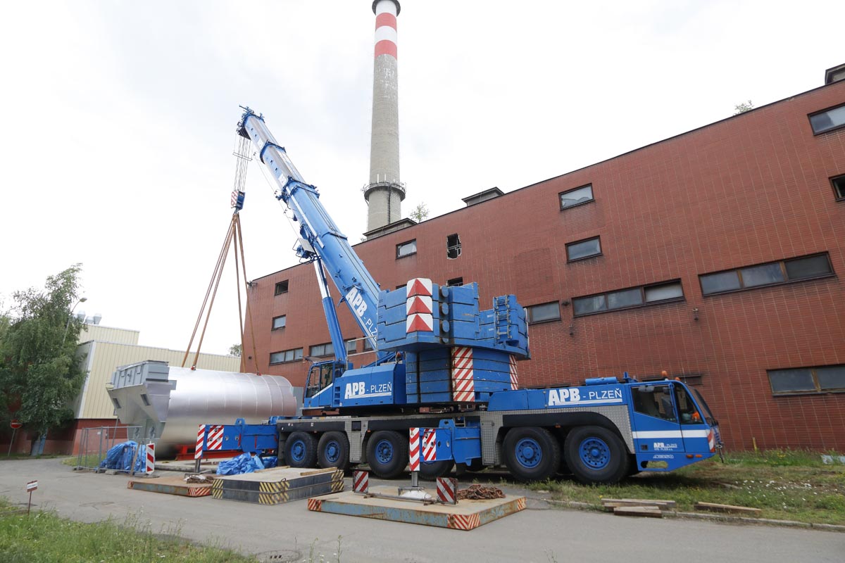 Transport and installation of technology by crane AC 350 at Prague heating plant.