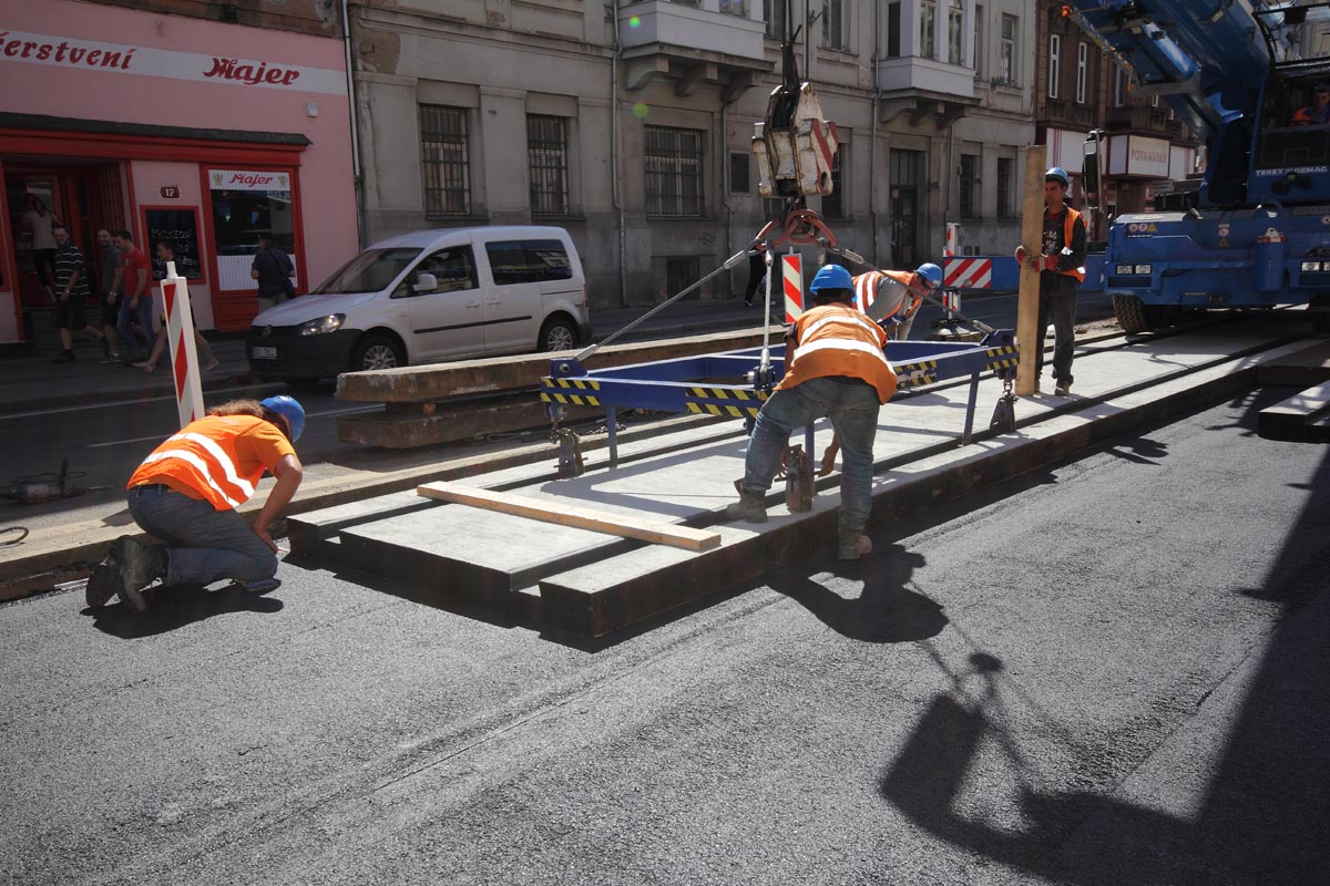 The reconstruction of old tram line in Pilsen was completed in two sections, crossroad Náměstí Míru and Klatovská street tram stop U Práce. We have secured dismantling of old tram tracks and base pannels removing. This was followed by installation of new panels and putting the communication into the original state.