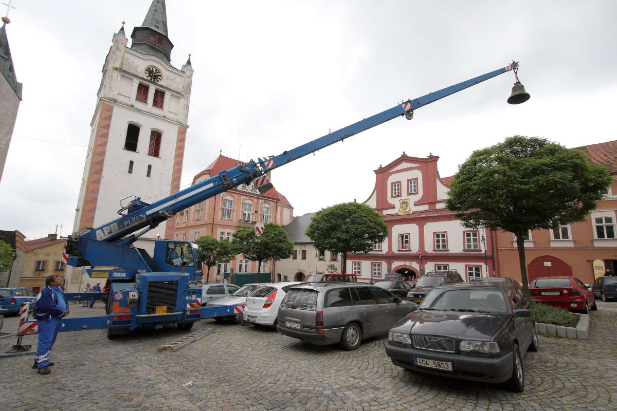 Removal of Gothic bell. Using a crane, we removed the Maria Hilf Gothic bell dating back to 1419.