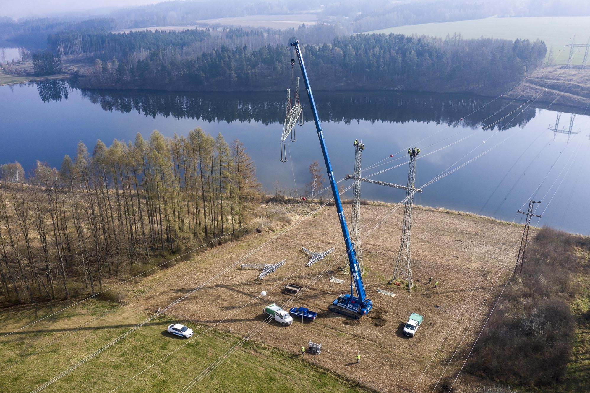 We replaced power line poles by using LIEBHERR LTR 1100 crane.